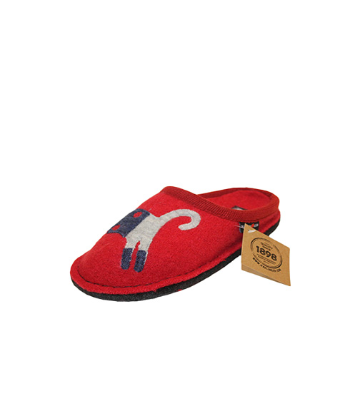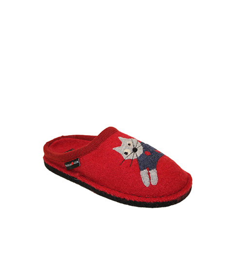 Haflinger Cucho Paprika 31308042, questa simpatica ciabatta appartiene alla linea flair, cui la caratteristica sono la tomaia in feltro o morbida lana cotta di pura lana vergine.